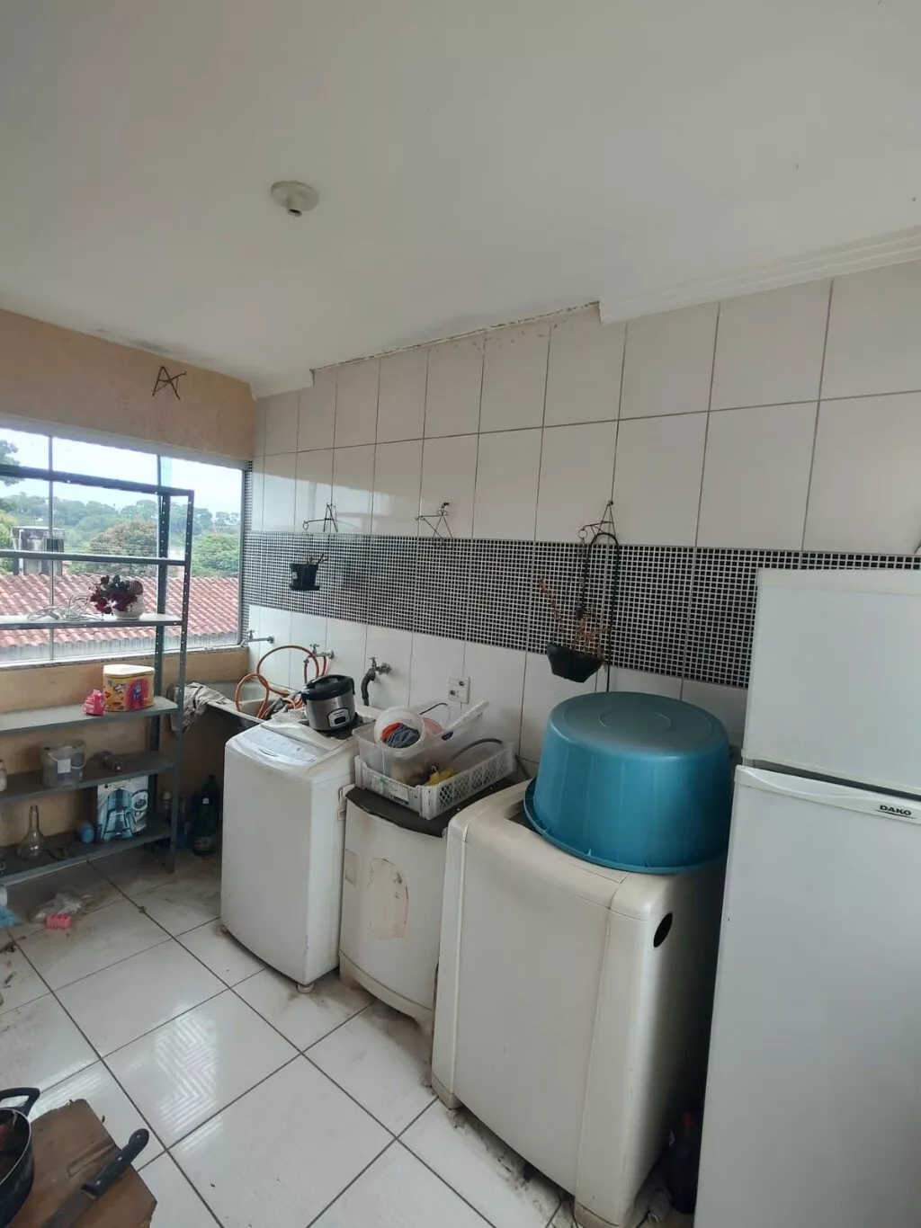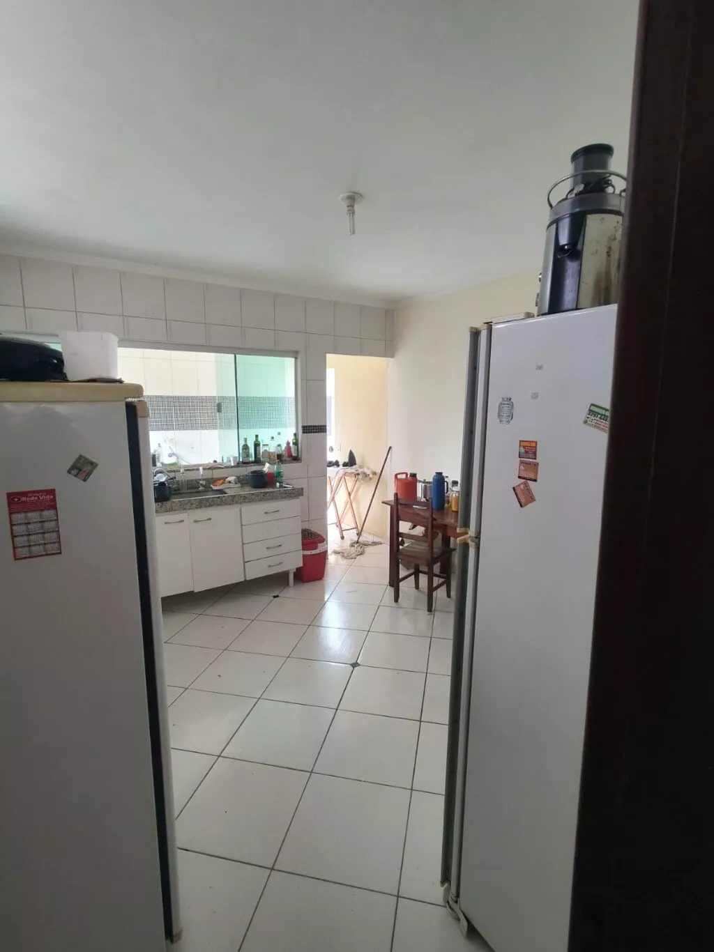 Sala, cozinha, três quartos, banheiro social, área e garagem descoberta.