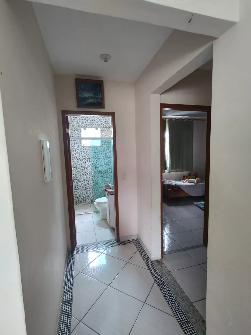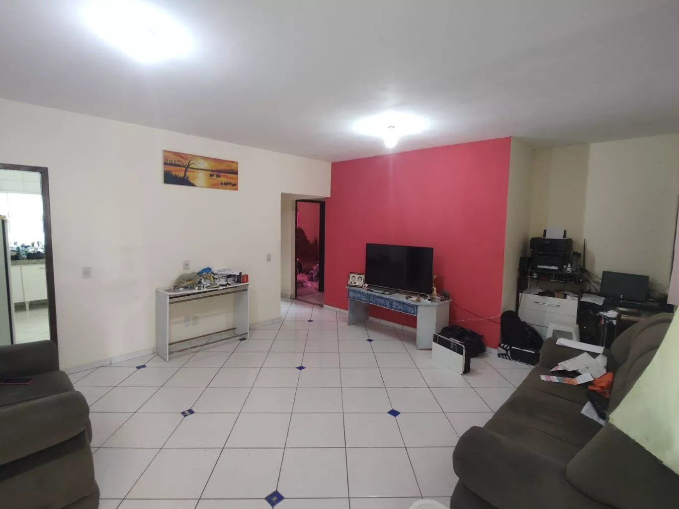 Sala, cozinha, três quartos (sendo um deles uma suíte), banheiro social, garagem coberta e lavanderia.