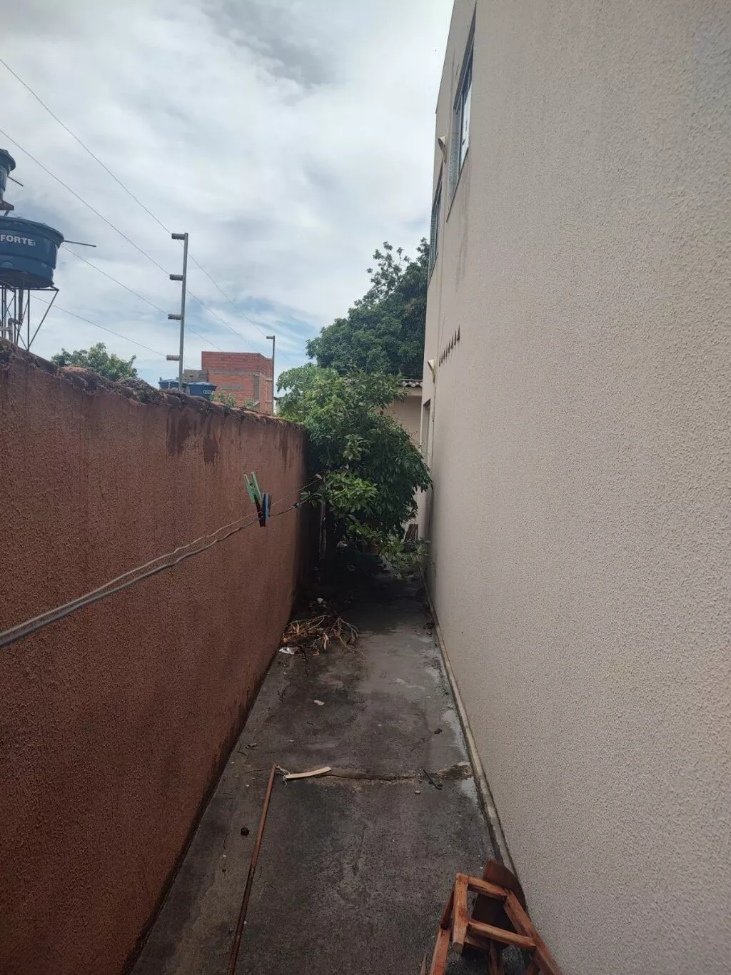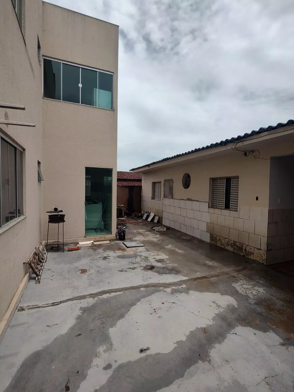 O imóvel é composto por um prédio de dois andares e uma casa nos fundos. A distribuição dos ambientes é a seguinte: